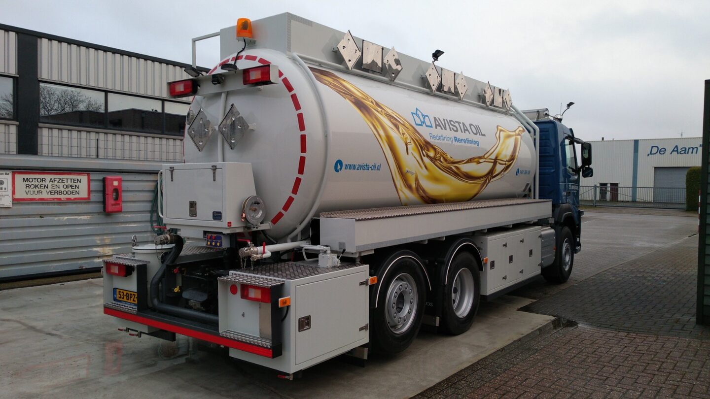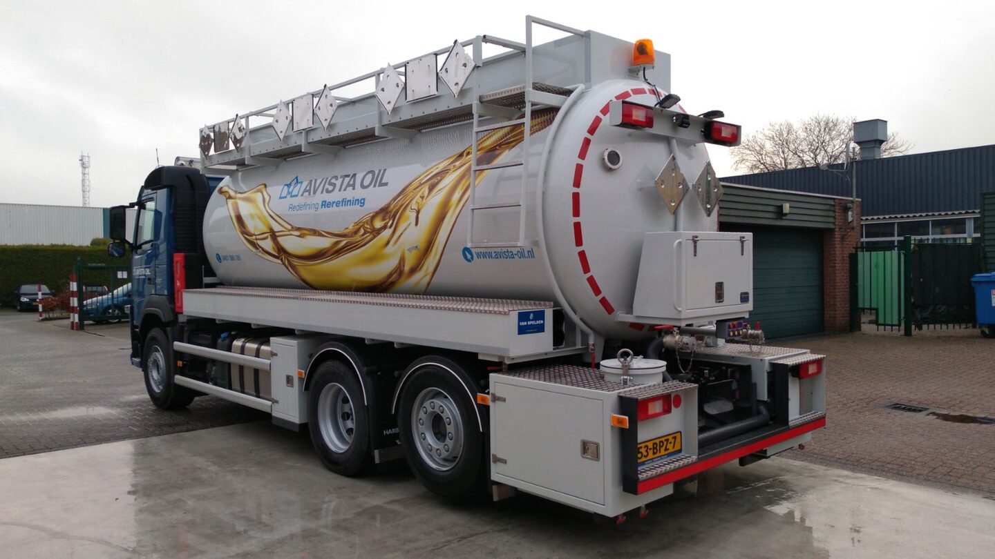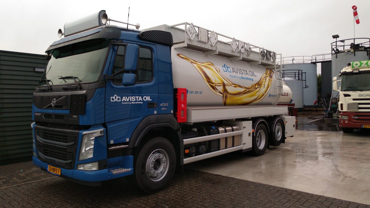 De transformatie naar AVISTA OIL begint nu echt zichtbaar te worden. In samenwerking met Harbers Trucks hebben wij deze schitterende inzamelwagen in de nieuwe huisstijl afgeleverd. Dit betreft een 3 compartimenten ADR vacuümwagen met een totale inhoud van bijna 17.000 liter voor het inzamelen van afgewerkte olie, koelvloeistof en remvloeistof. Het geheel staat op een geijkt weegsysteem van Welvaarts en is voorzien van een filterinstallatie en een zuighaspel. Wij wensen AVISTA OIL veel werkplezier met deze nieuwe aanwinst!